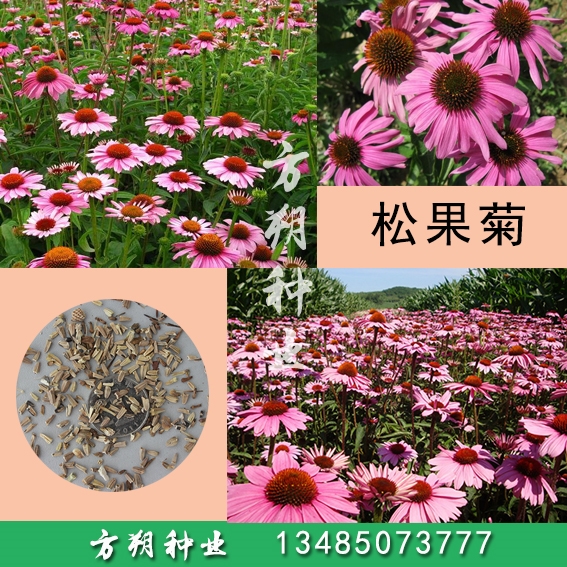 可播種繁殖、分株繁殖和扦插繁殖,以播種繁殖為主。澆透水,待水全部滲入地下后,均勻的撒播種子,2周即可發(fā)芽。長至2片真葉時間苗,當苗高10cm時定植,定植株行距40×40cm,定植后并澆透水。定植時要選擇向陽環(huán)境,對土壤深翻后施以腐熟廄肥。生長期應增施肥水,臨近花期可葉面噴施2次高錳酸鉀液肥,則花色艷麗持久,株形豐滿勻稱。對于露地越冬植株,應在花后清除殘花花枝與枯葉,澆足凍水或?qū)⒌叵虏糠钟枚逊矢采w或壅土覆蓋。松果菊生長健壯,管理簡便,園林中可作背景栽植或作花境、坡地的栽植材料,切花亦可。